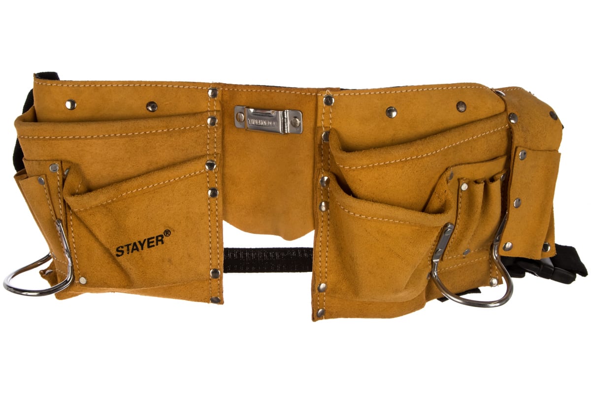 Кожаный пояс для инструментов STAYER MASTER, 10 карманов, 2 скобы 38510 - приспособление для хранения во время работы и переноса инструмента.