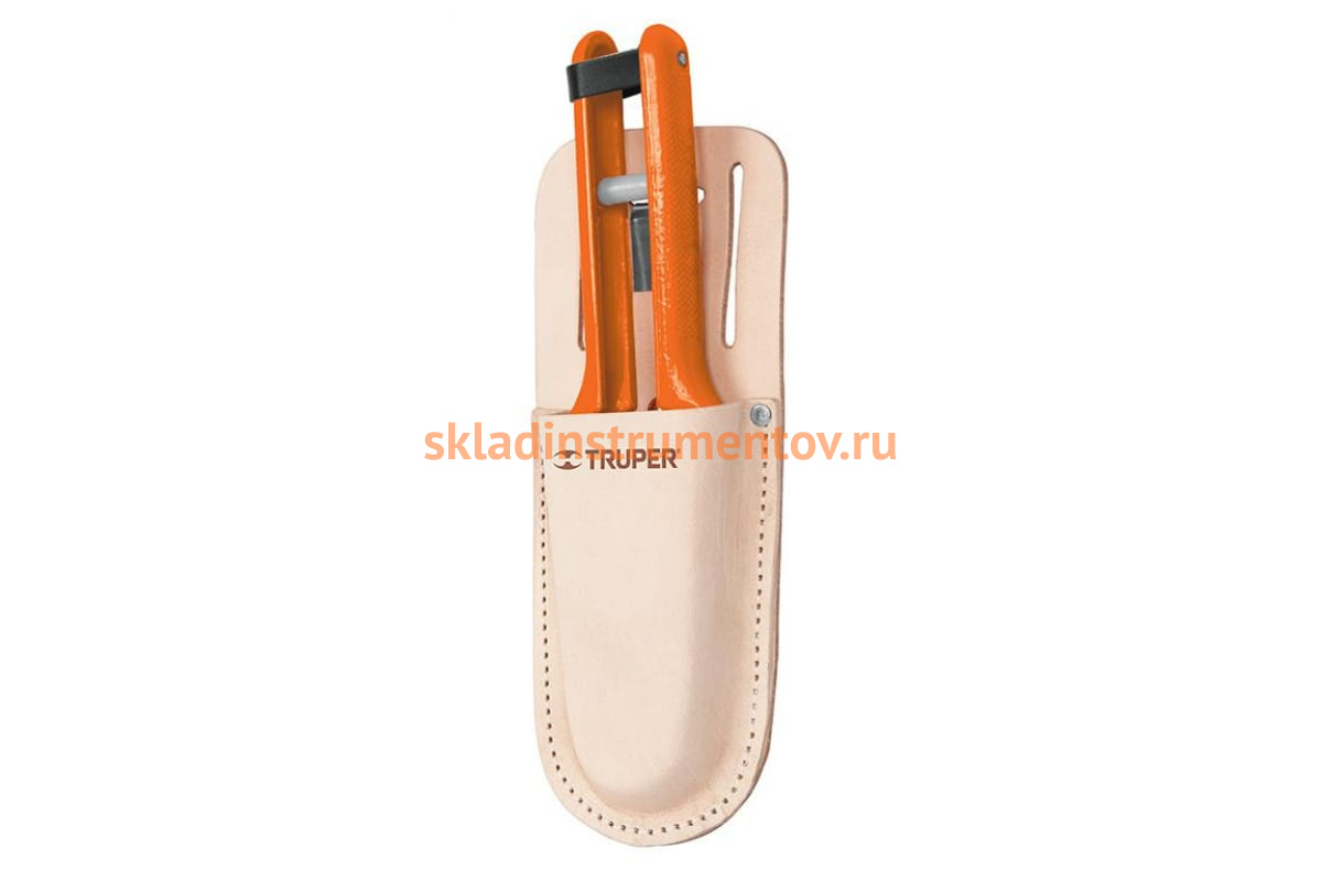 Поясной чехол для инструмента Truper кожа POCA-T 17344 изготовлен из натуральной кожи. Предназначен для фиксации на поясном ремне рабочего. Благодаря нему секатор всегда будет под рукой.