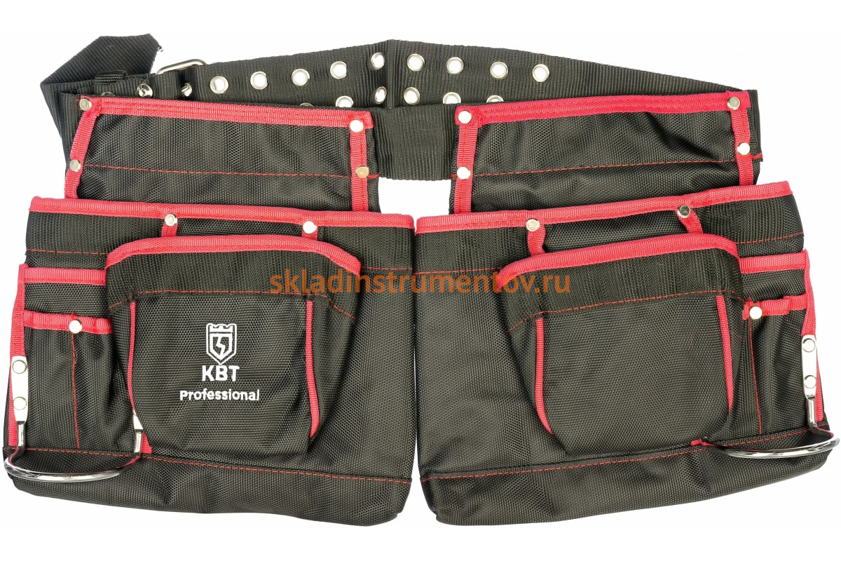 Сумка-пояс монтажника КВТ С-12 66146 применяется для более удобной и эффективной работы. Состоит из прочного пояса и двух сумок, закрепленных на нем с помощью заклепок. Пояс имеет металлическую пряжку и окантовку отверстий. Петли используются для подвешивания инструментов.