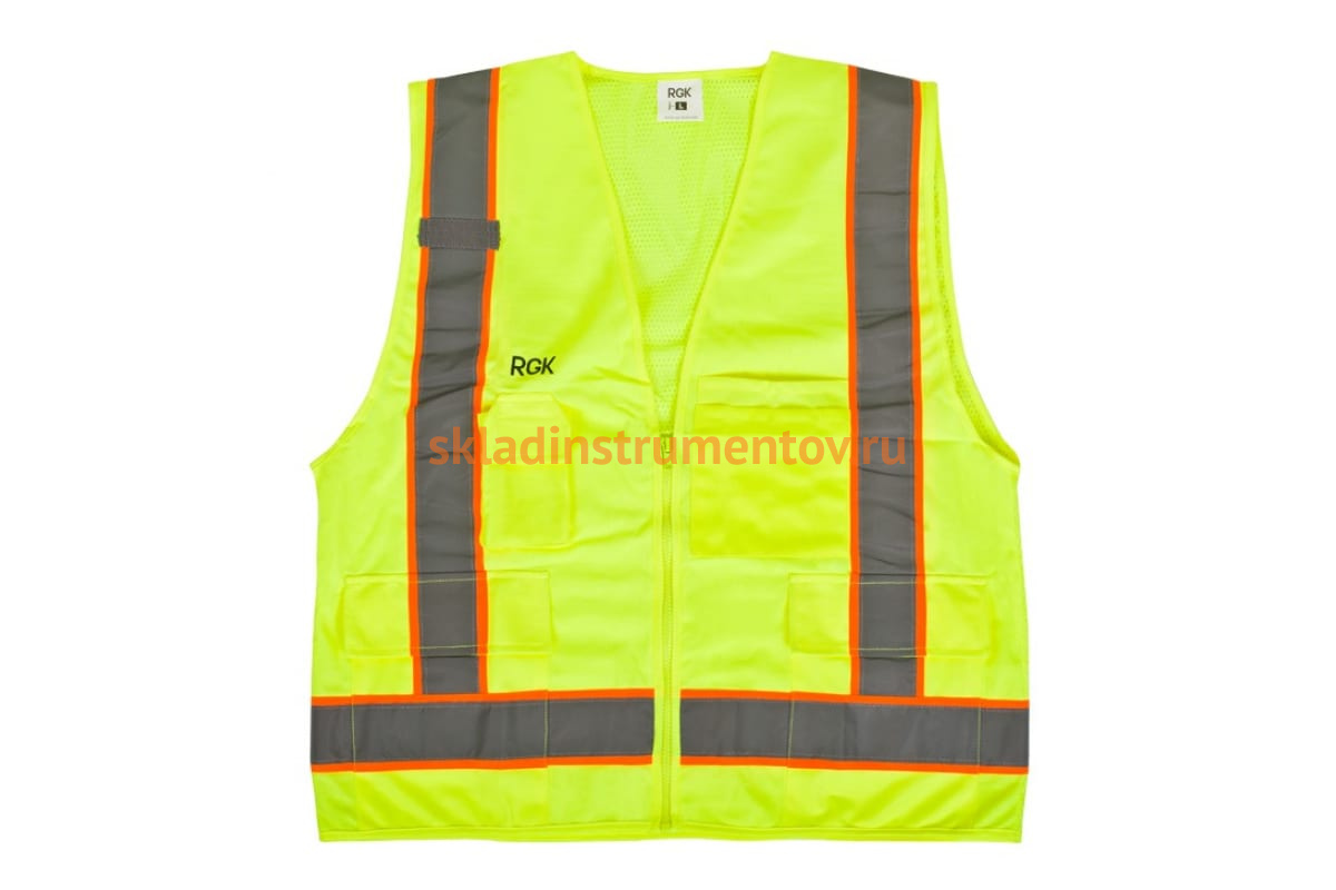 Сигнальный жилет RGK JL-M 4610011871573 подходит для полевых работ. Обеспечивает безопасность в темное время суток.