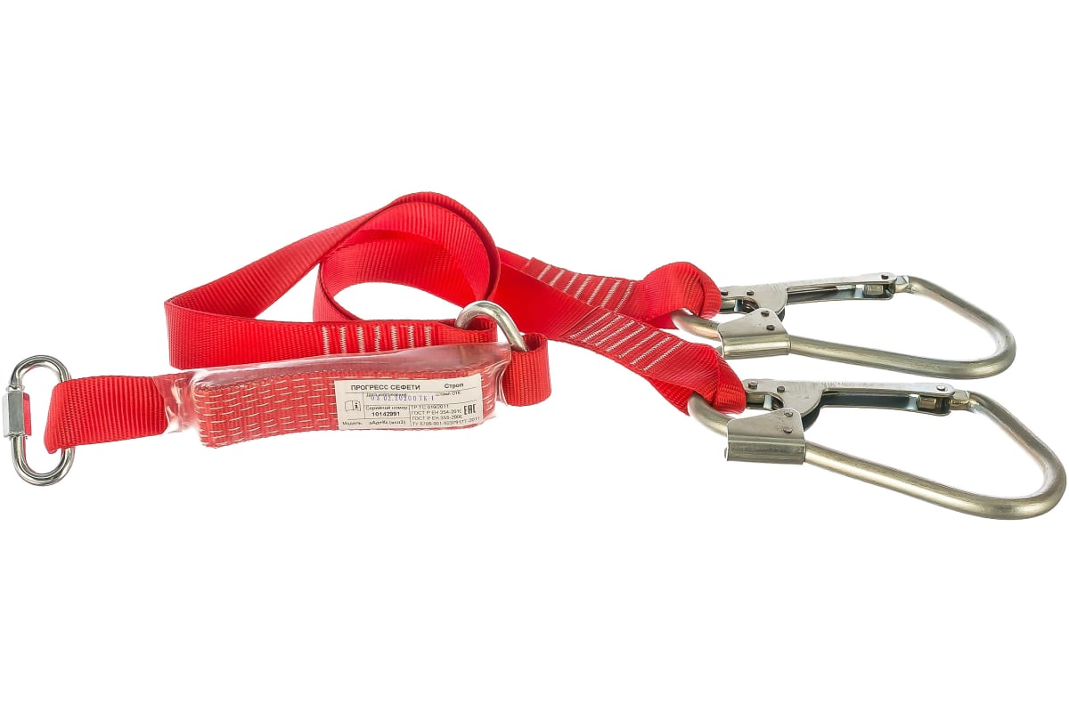 —Двойной строп из ленты с амортизатором, с двумя большими монтажными и соединительным карабином ПРОГРЕСС СЕФЕТИ Строп аАд+Кс исп.3—