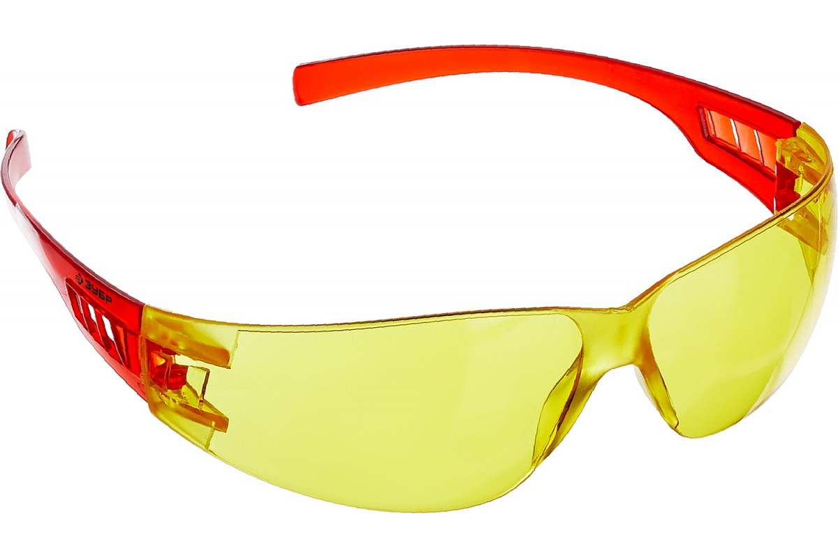 Защитные очки открытого типа Зубр Мастер, желтые, пластиковые дужки, 110326 - ударопрочные, долговечные, устойчивы к царапинам очки, предназначенные для защиты органов зрения от твердых летящих частиц. Благодаря желтой линзе обеспечивается хорошая видимость даже при слабом освещении и в пасмурную погоду. Для комфортного ношения изделие имеет анатомичную форму заушин.