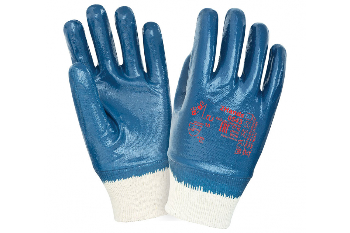 Перчатки 2Hands джерси/полное покрытие нитрилом 0543-10 устойчив к слабым растворам агрессивных жидкостей и маслам.