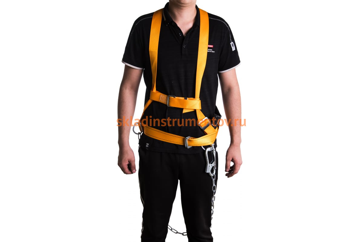 Удерживающая система с наплечными лямками со стропом из цепи ПРОГРЕСС СЕФЕТИ УС 2 ГД удерживает пользователя от падения и обеспечивает безопасное перемещение на высоте. Для подсоединения стропа в случае эвакуации или спасательной операции предусмотрено заднее D-кольцо. Удерживающую систему можно использовать при проведении монтажных, ремонтных или строительных работ. Статическая нагрузка - не менее 15 кН (1500 кгс).
