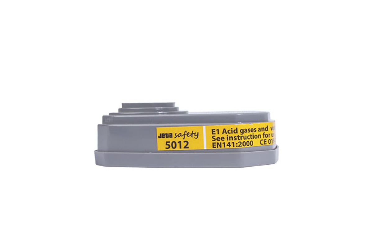 Фильтры от кислых газов и паров E1 JetaSafety 5012 используются парно с газовыми полумасками JS5000. Обеспечивают защиту от кислых газов и паров. Данные картриджи рекомендуется использовать с предфильтрами 5020, которые повышают его срок службы.
