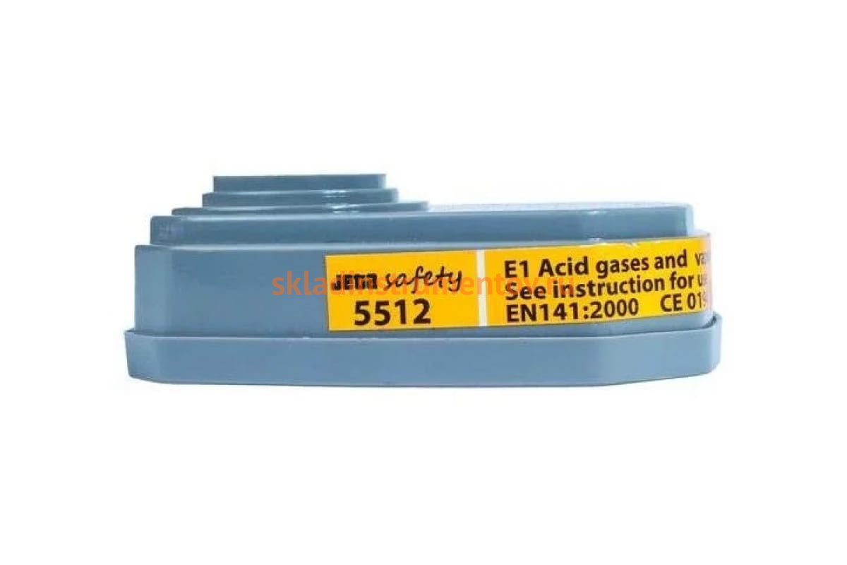 Фильтры от кислых газов и паров E1 JetaSafety 5512 подходят к многоразовым полумаскам (респираторам) JS5500. Имеют байонетное крепление. Применяются для защиты органов дыхания от кислых газов и паров Е1. Используются совместно с предфильтрами 5020.
