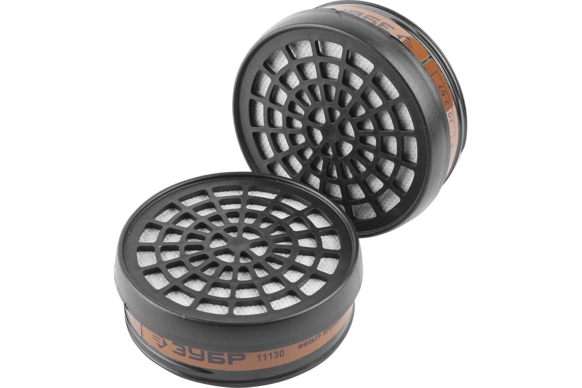 Сменный фильтр Зубр ЭКСПЕРТ, для респираторов и масок, тип А1 от органических паров, 2 шт., 11130 предназначен для защиты от вредных веществ в виде органических газов и паров с температурой кипения свыше 65°С (пары бензина и керосина, циклогексан, сероуглерод, толуол, ксилол, различные спирты и эфиры).