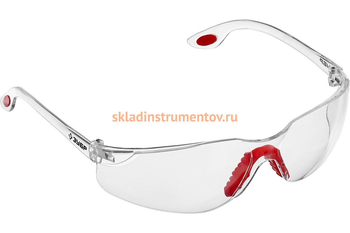 Прозрачные защитные очки Зубр Спектр 3 открытого типа, двухкомпонентные дужки 110315 обеспечивают защиту глаз от низкоэнергетического удара.