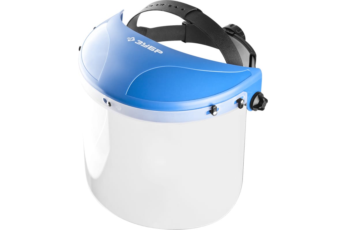 Защитный лицевой щиток Зубр МАСТЕР, пластик оголовье, разборная конструкция, визор из поликарбоната, толщина 2 мм, 400x200 мм, 11085 создает защиту от воздействия твердых частиц, искр, стружки, окалин, абразивов и брызг не разъедающих жидкостей.