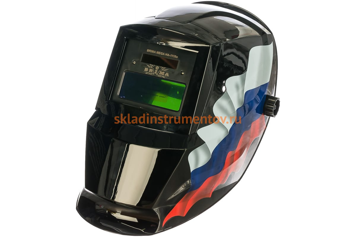 Маска Brima Хамелеон НА-1113а PERFECT российский флаг 0012850 обеспечивает защиту головы от вредных уф-излучений во время сварочных работ.