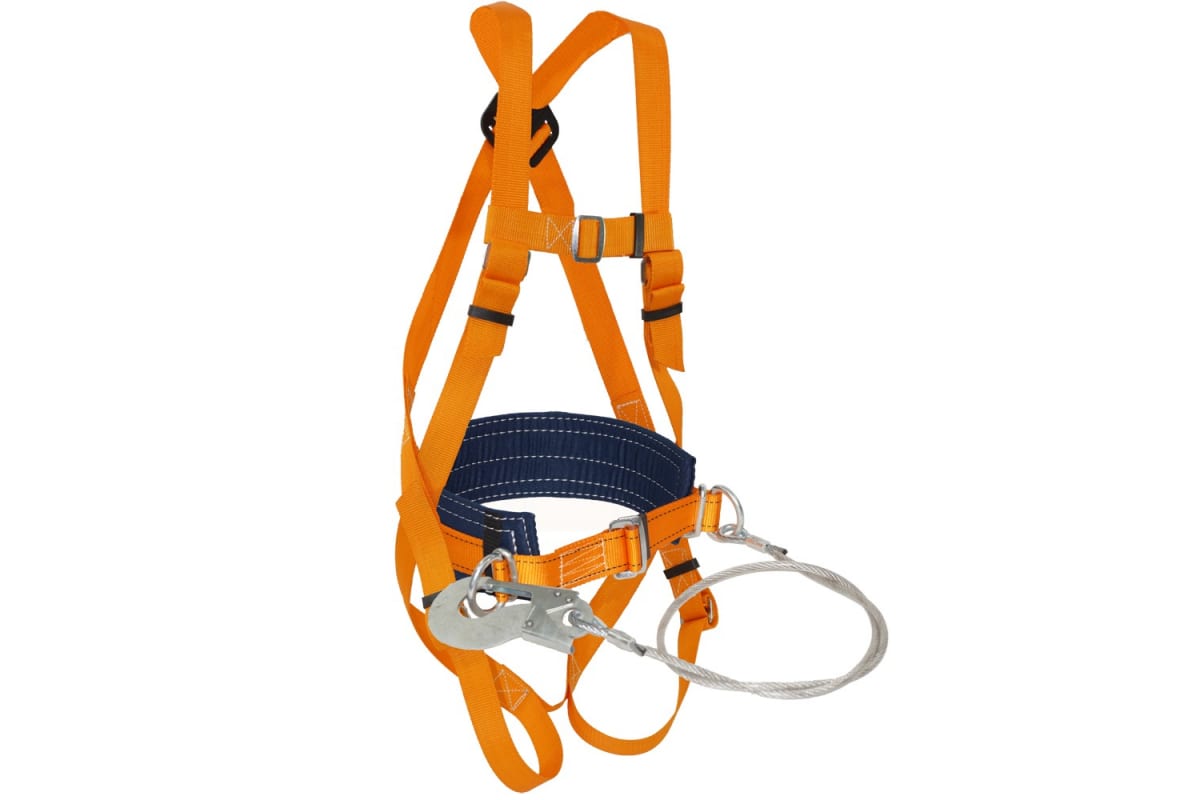 Удерживающая система с наплечными и набедренными лямками и стропом из металлического троса в ПВХ оболочке ПРОГРЕСС СЕФЕТИ УС 2 БЖ служит для предохранения от падения при срыве оператора во время работы на высоте. Строп выполнен из металлического троса в ПВХ оболочке и имеет длину 1.45 м для надежности и удобства использования.