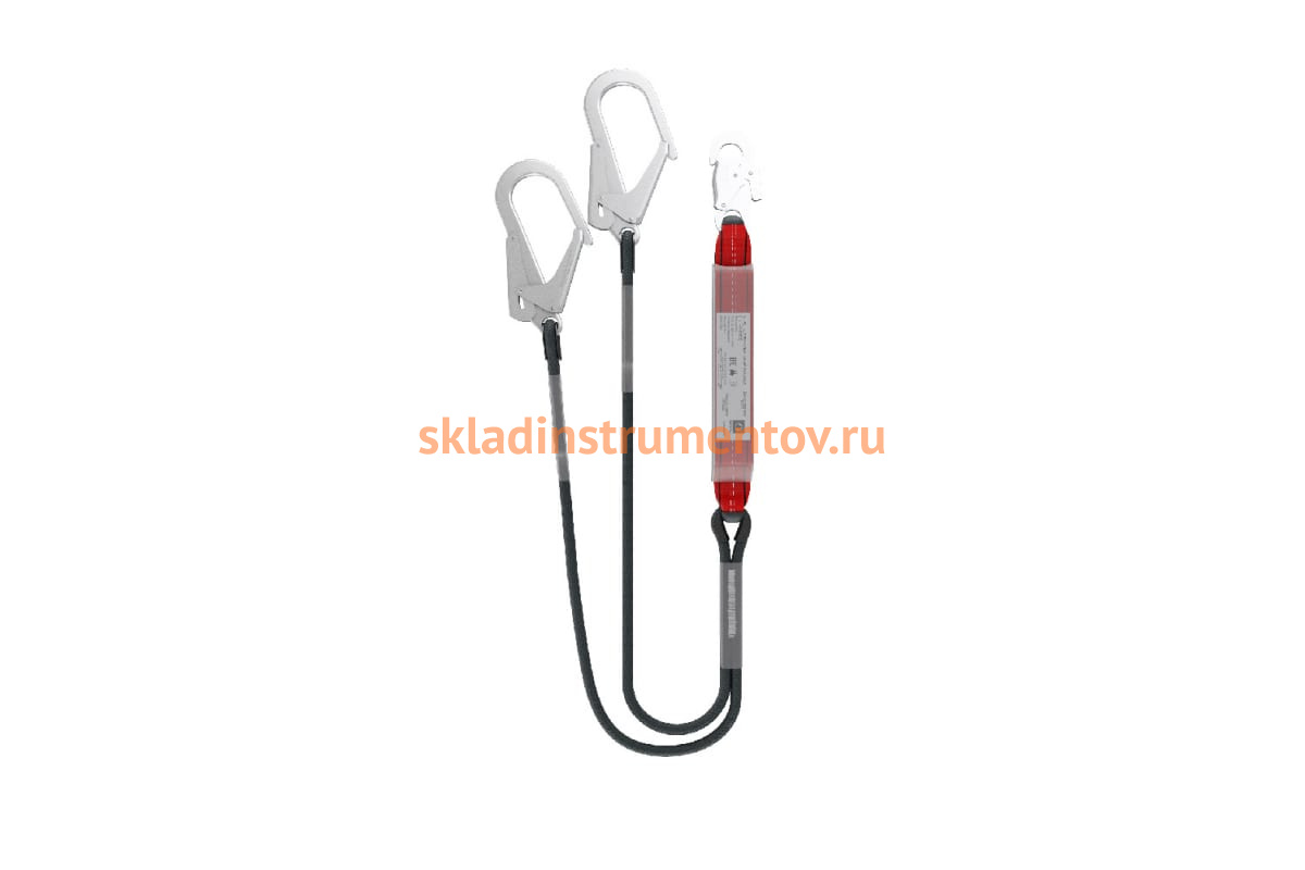 Огнеупорный двойной строп SAFE-TEC с амортизатором ABF212R защищает работника при перемещении и работе на высоте. Предохраняет его от падения.