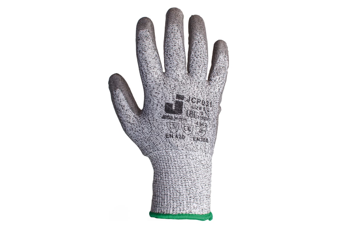Перчатки для защиты от порезов Jeta Safety, 3 класс, JCP031-M – защитные промышленные перчатки от порезов (3 класс) с полиуретановым покрытием.