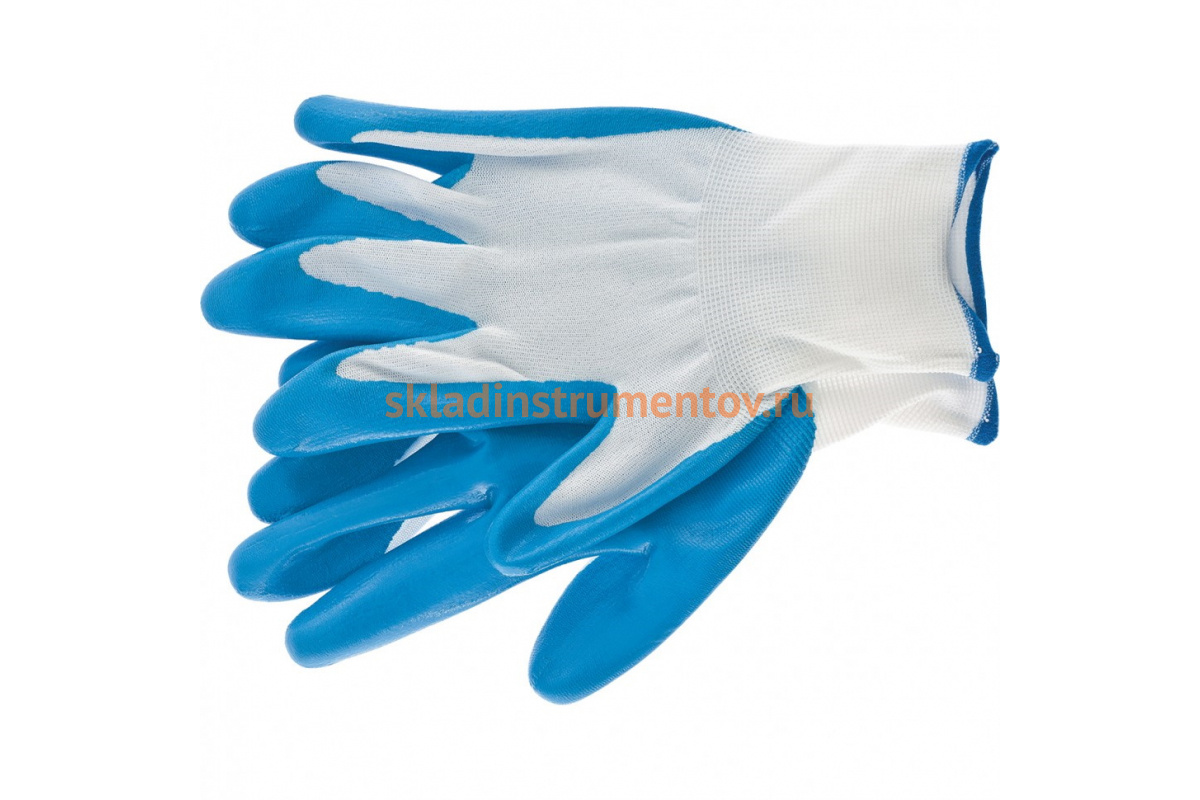 Маслобензостойкие полиэфирные перчатки с синим нитрильным покрытием СИБРТЕХ р.L 67862 предназначены для строительных и хозяйственных работ.