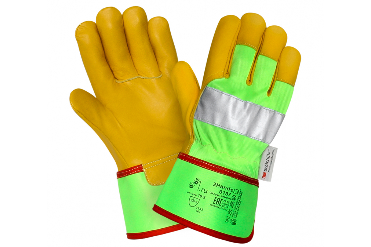 Перчатки повышенной видимости 2Hands 0137-10,5 обеспечивают повышенную видимость пользователя в темных условиях.