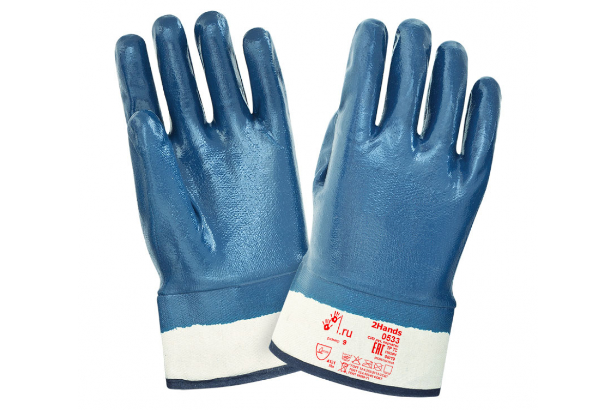 Перчатки 2Hands джерси/полное покрытие нитрилом, манжет крага 0533-10 служат для защиты рук пользователя от порезов.