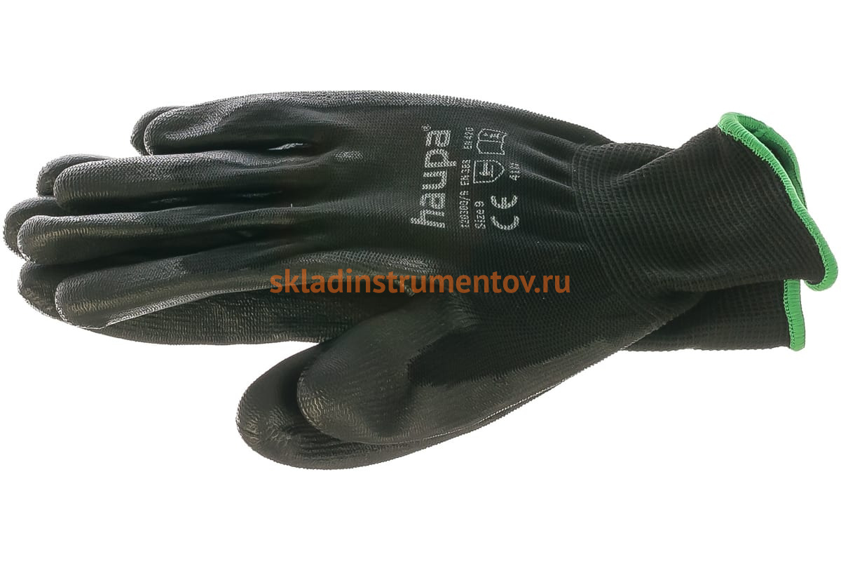 Перчатки с полиуретановым покрытием HAUPA размер 9, черные, 1 пара 120300/9 применяются при выполнении складских и монтажных работ, работ в области точной механики.