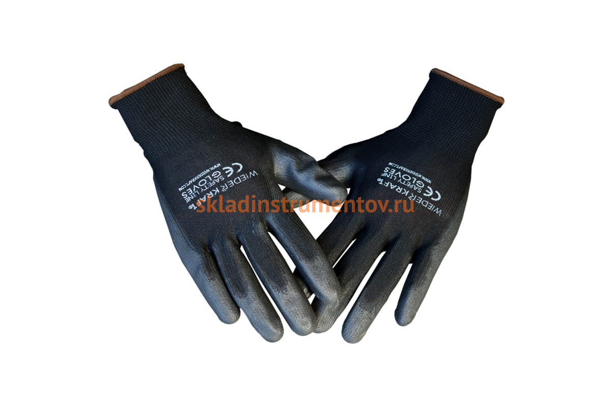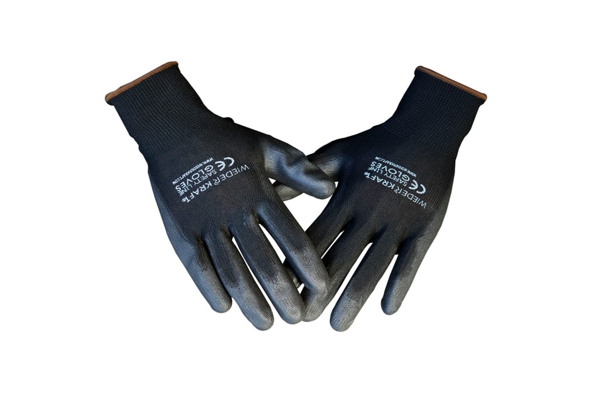 Защитные легкие бесшовные перчатки WIEDERKRAFT размер M, пара WDK-PU01B/M используются при выполнении слесарных, малярно-кузовных, строительных и прочих работ.