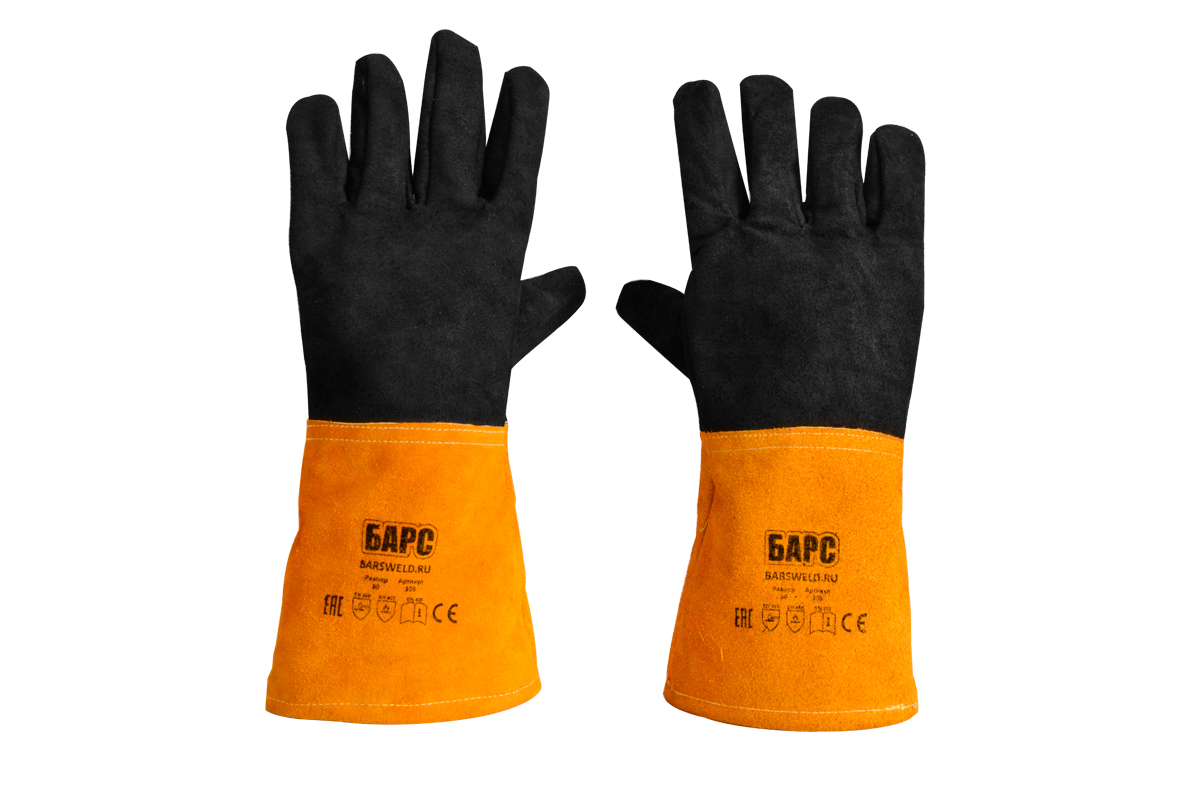 Пятипалые спилковые краги с подкладкой Барс СВ000011658 надежно защищают руки от ожогов во время сварочных работ.