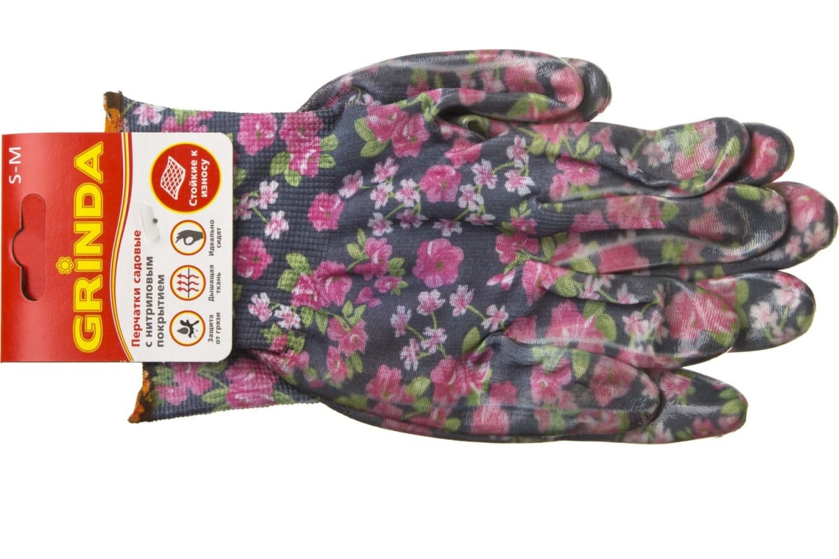 Садовые перчатки с прозрачным нитриловым покрытием Grinda черные, р. S-M 11297-S