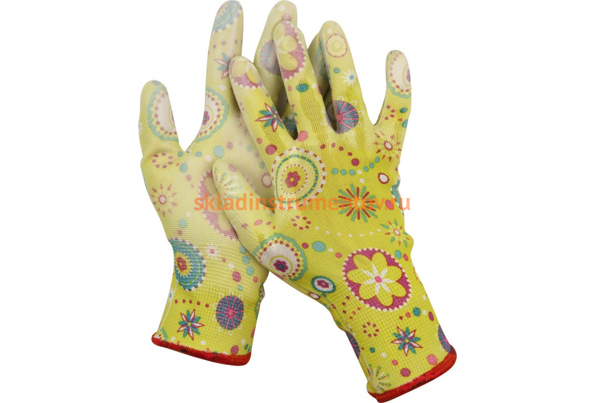 Садовые перчатки Grinda прозрачное PU покрытие, 13 класс вязки, зеленые, размер L 11290-L защищают руки от загрязнений и влаги.