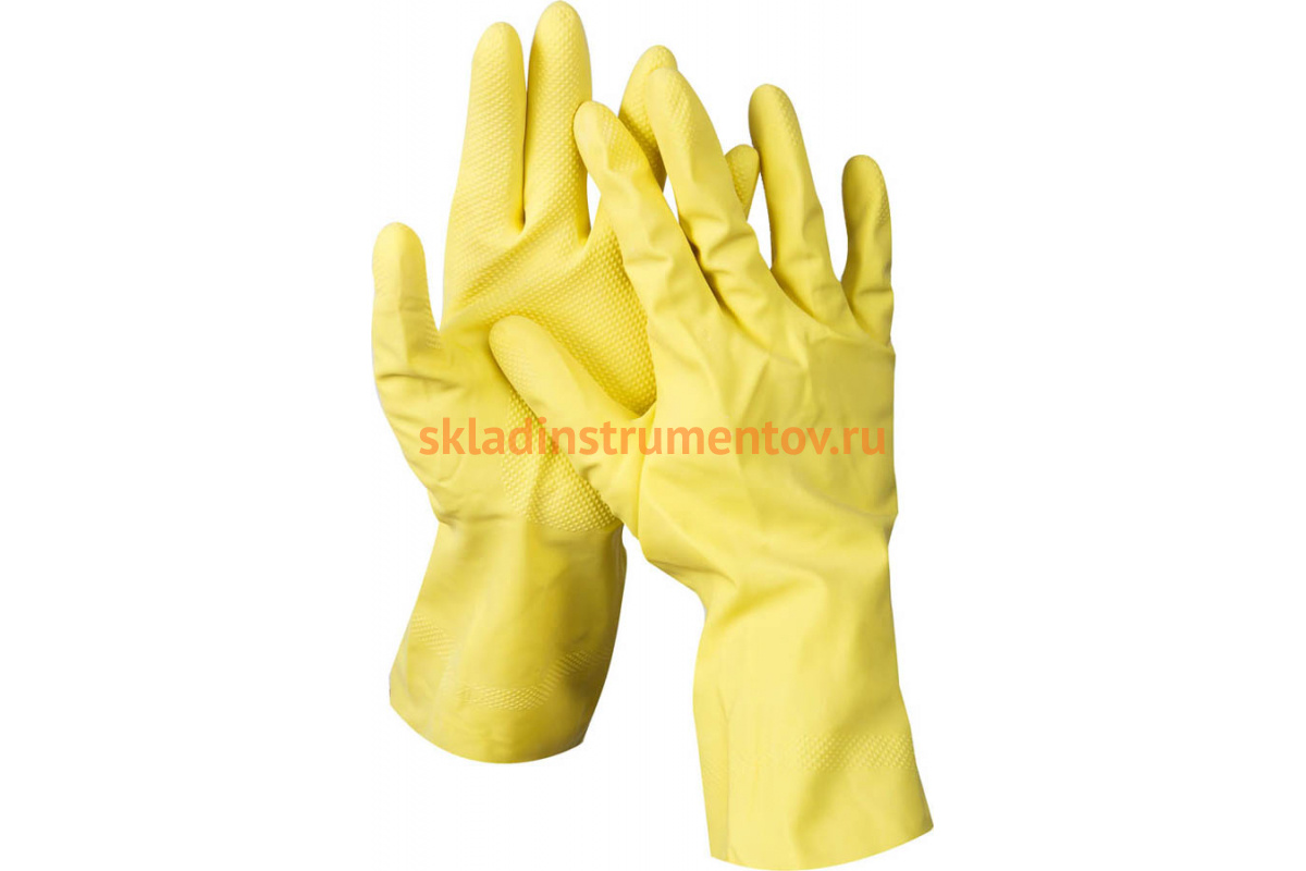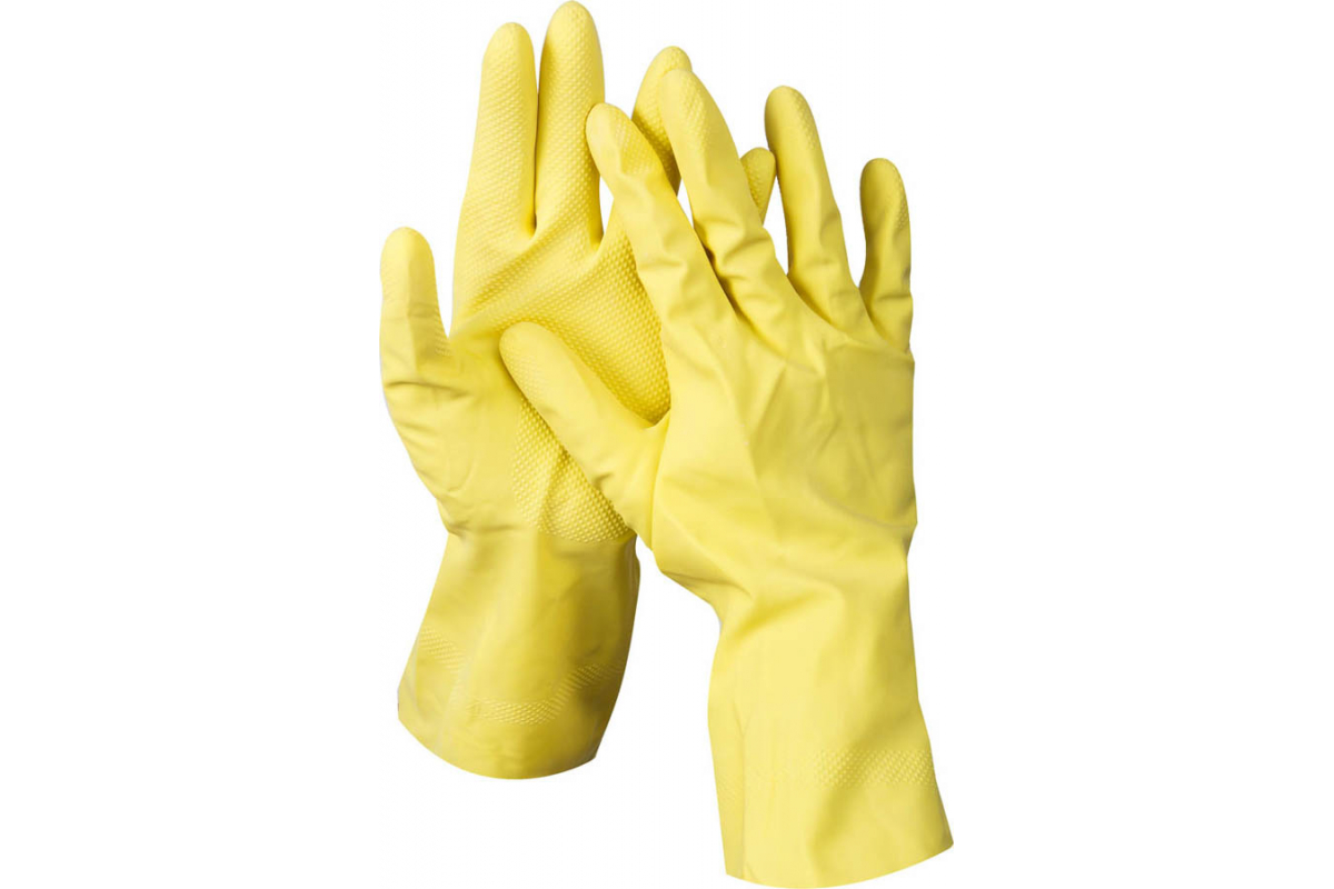 Латексные перчатки DEXX х/б напыление, рифлёные, S 11201-S используются во время бытовых работ, защищая руки от химических средств, влаги и грязи.