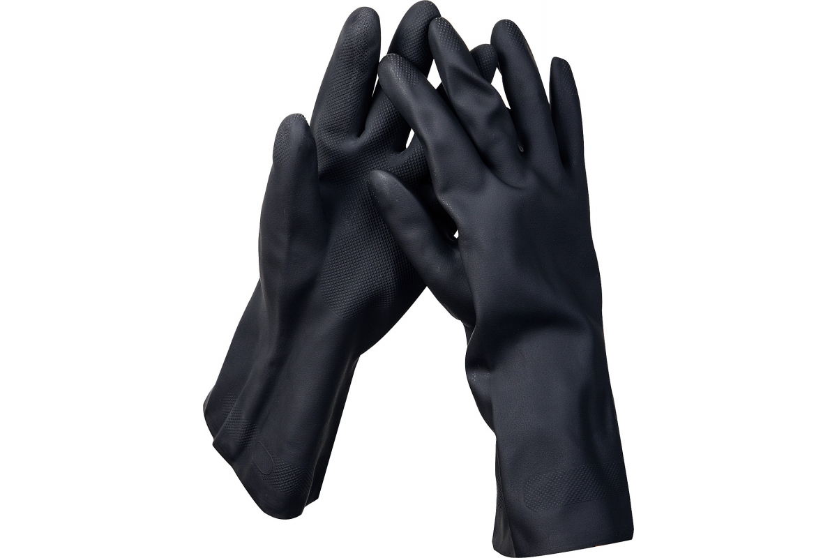 Противокислотные неопреновые перчатки с х/б напылением 11282-XL Kraftool используются для защиты кожи рук от широкого спектра веществ химической, пищевой и нефтепромышленности. Перчатки могут использоваться как в профессиональных целях на производстве, в лаборатории, так и в домашнем быту. Не восприимчивы к таким продуктам, как нефть, масла, жиры, растворители. Также подходят для работы с кислотами, концентрация серной кислоты в которых не превышает 80 %, и щелочами, в которых концентрация гидроокиси натрия менее 40 %. Не содержат аллергических компонентов. С внутренней стороны перчатки покрыты хлопчатобумажным напылением, которое предотвращает опрелости при длительном применении. Модель перчатки с внешней стороны предусматривает пупырчатую структуру, благодаря которой осуществляется надежный захват предметов.