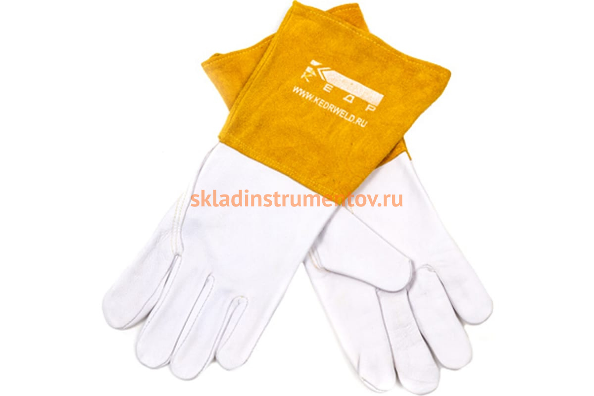 Сварочные краги КЕДР КС-17 ПРОФИ TIG бело-бежевые, р-р M 8007531 выдерживают воздействие открытого пламени до 10 секунд.