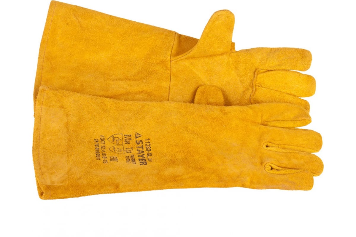 Термостойкие краги с подкладкой STAYER PROFI длина 400 мм 11333-XL_z*01 предназначены для сварщиков и металлургов. Для максимального комфорта предусмотрена внутренняя подкладка, приятная на ощупь. Удлиненная и жёсткая манжета прикрывает область запястья. Краги изготовлены из спилка и обладают устойчивостью к истиранию. Размер: XL. Длина составляет 40 см.