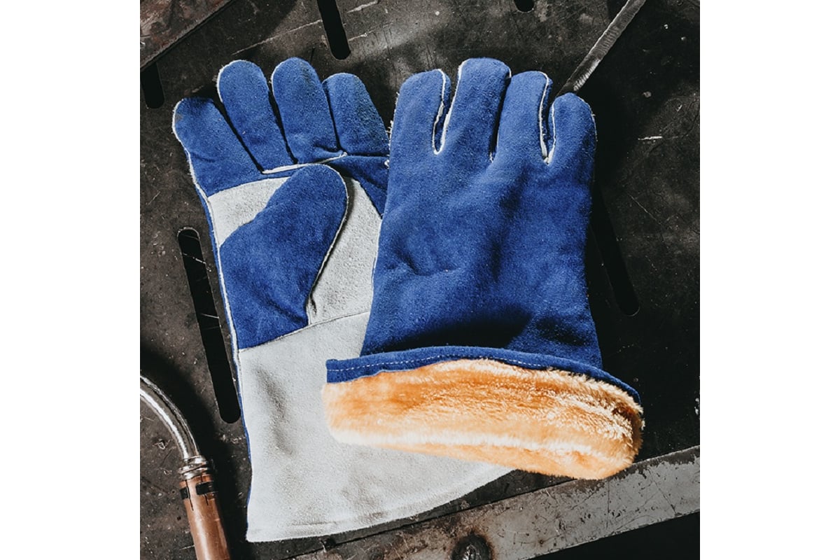 Все швы усилены кожаным кантом для защиты от искр и выплесков металла.