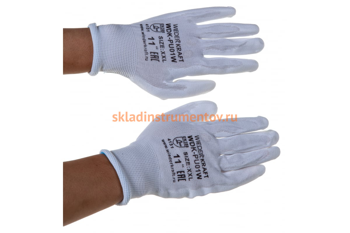 Белые лёгкие бесшовные защитные перчатки эргономичной формы из нейлона WIEDERKRAFT WDK-PU01W / XXL используются при работе с инструментом, мелкими деталями и крепежом. Сохраняют чувствительность пальцев. Надежно защищают от контакта с масляными и другими загрязнениями.