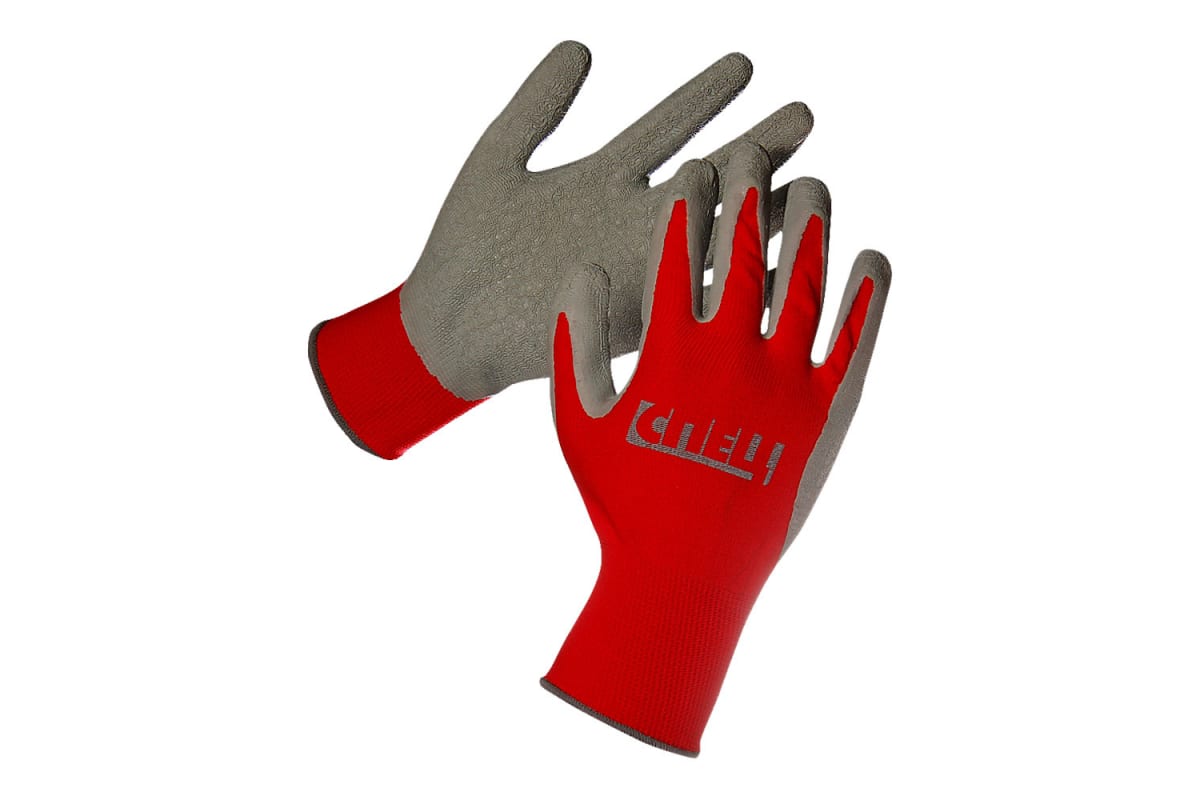 Перчатки СПЕЦ красные, нейлон, покрытие частичное латекс, р.9 31024016-9 используются во время выполнения строительных работ, сбора мусора, погрузки и приемки товара, точных работ.