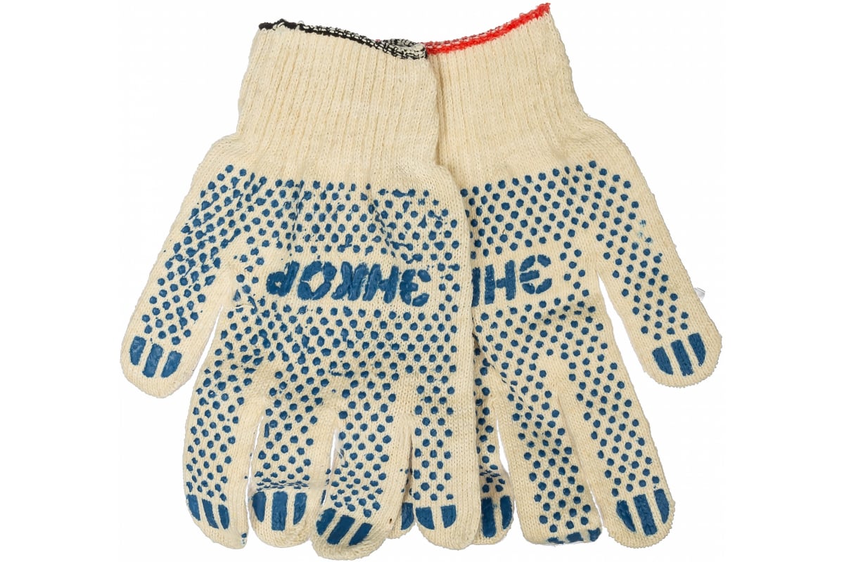 Хлопчатобумажные перчатки Энкор 56103 имеют ПВХ покрытие с увеличенной прочностью. Их внешний слой — полиэфир. Такие перчатки хорошо пропускают воздух и предназначены для защиты рук от повреждения при проведении различных работ. Используют во время строительных и сельскохозяйственных работ, а также при точных ручных механосборочных работ.