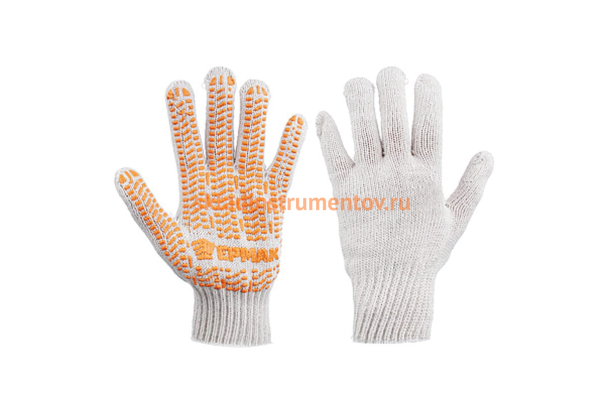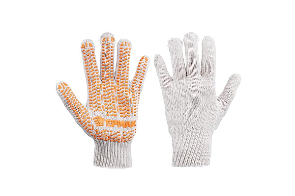 Вязаные перчатки ЕРМАК ЛЮКС х/б с ПВХ напылением, 5 нитей, черные, 62г, 24см, подвес 638-008 защищают руки от загрязнений и легких механических повреждений порезов, ссадин.