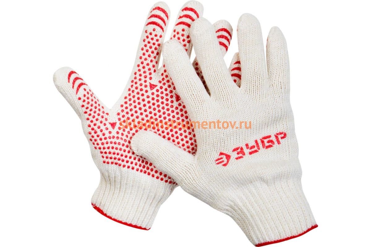 Трикотажные перчатки с защитой от скольжения "МAСTEP" ЗУБР 11456-S предохраняют руки от загрязнений и механических повреждений во время хозяйственно-бытовых, садовых, строительных и погрузочно-разгрузочных работ. Предотвращают возникновение мозолей или натирания при продолжительном труде. Изготовлены из натурального хлопка и полиэстера, благодаря чему происходит естественный воздухообмен, и руки "чувствуют себя" комфортно. Элементы из ПВХ на внутренней стороне ладоней обеспечивают лучшее сцепление с охватываемыми предметами и исключают их выскальзывание. Перчатки имеют эластичные манжеты для дополнительной защиты запястий и удобства работы. Высокая плотность вязки по 7 классу гарантирует их прочность и стойкость к истиранию.