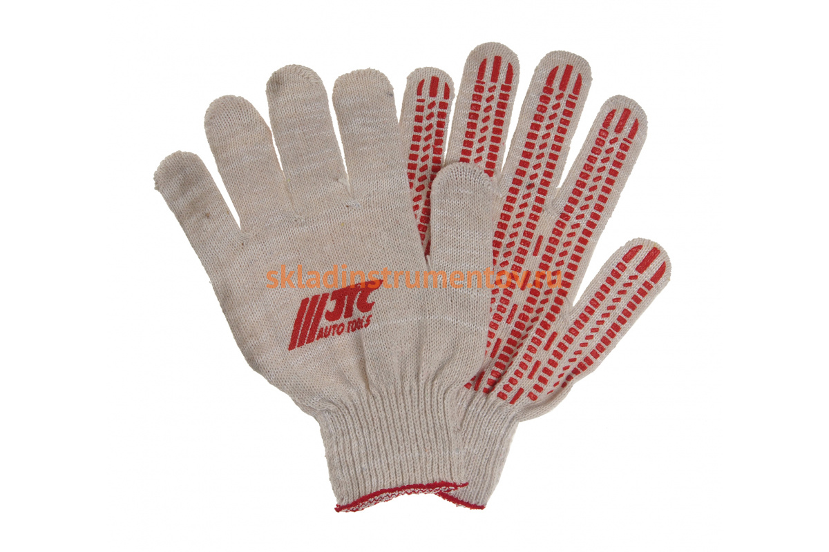 Перчатки JTC х/б с ПВХ напылением и логотипом 10 кл. XB1052 применяются для защиты рук от повреждений во время работы.