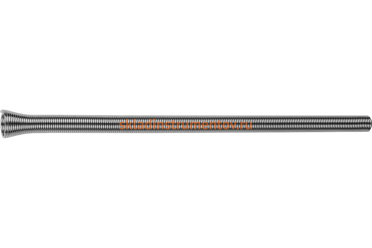 Пружина для гибки медных труб Зубр МАСТЕР 12 мм 7/16" 23531-12 производится из пружинной стали высокой прочности. Специальное покрытие препятствует образованию коррозии и увеличивает срок службы приспособления. Пружина подходит для работ с трубами большой длины, благодаря своей форме с закрученным конусом.