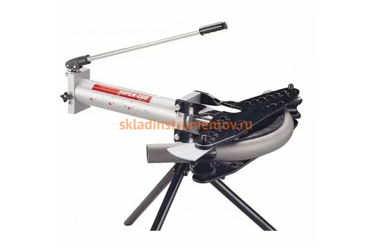Гидравлический трубогиб 2” SUPER-EGO 1000001834 подходит для сгибания водопроводных или газовых труб под заданным углом. Устойчивость инструмента обеспечивается тремя опорами. Отверстия на кронштейне позволяют переставлять боковые упоры и получать разный угол изгиба трубы.