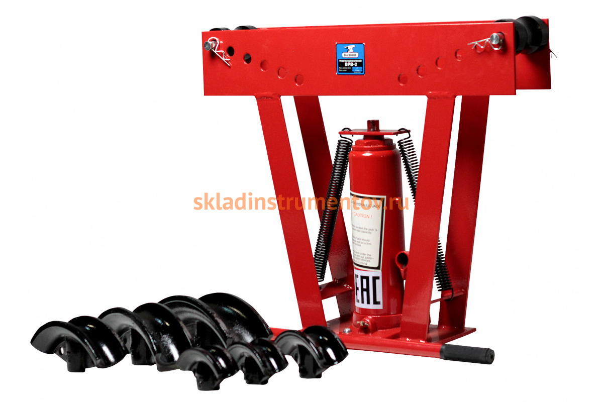 Ручной трубогиб BlackSmith BPB-2 оснащен парой пружин, которые позволяют быстро вернуть домкрат в исходное положение после завершения операции. Изделие выполнено из толстого листового металла, окрашено порошком.