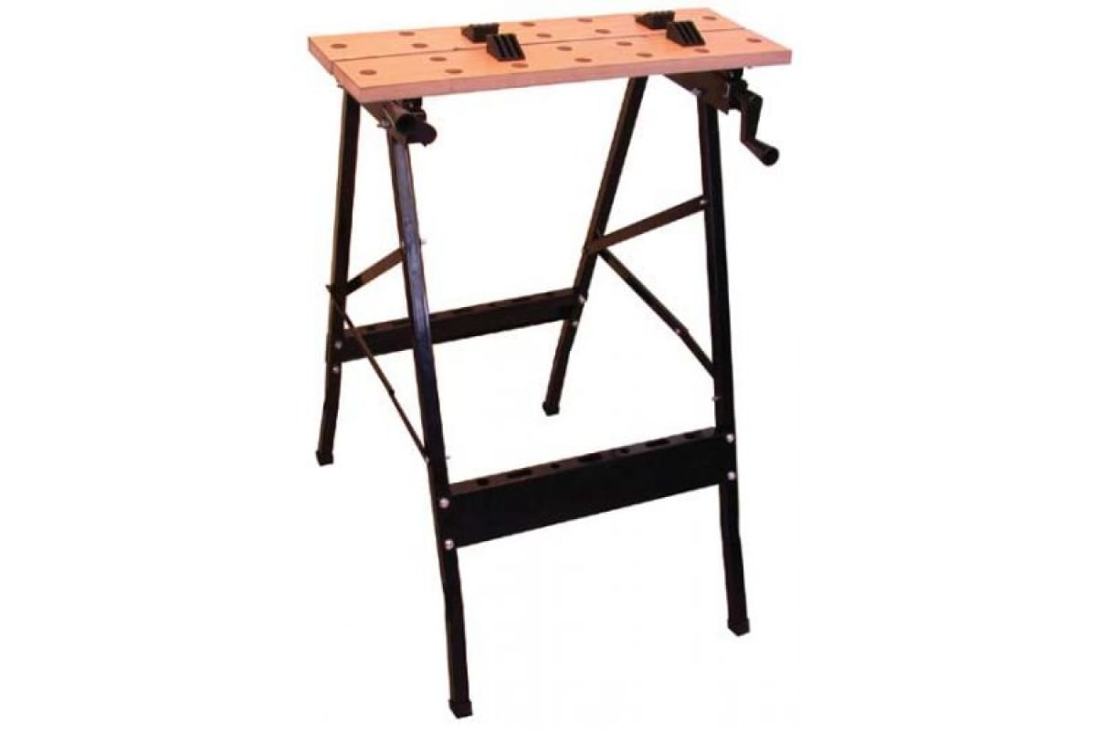Складной верстак Энкор 14217 - многофункциональное устройство для облегчения обработки различных заготовок. Имеется четыре упора, которые вращаются вокруг оси, что делает возможным фиксацию как прямоугольных, так и круглых заготовок. Верстак легко хранить и перевозить, благодаря складной конструкции. В столешнице предусмотрены отверстия для проведения сверлильных работ.