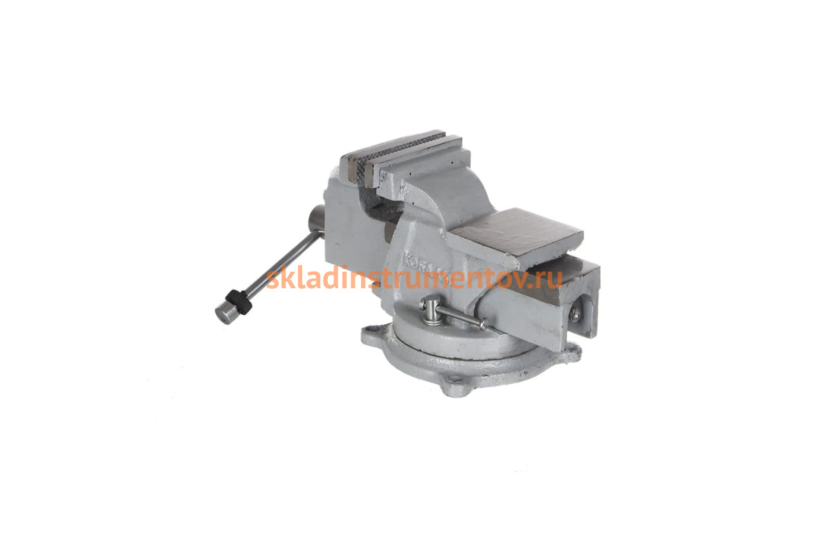 Слесарные поворотные стальные тиски КОБАЛЬТ 248-955 - надежный в работе зажимной инструмент. Конструктивной особенностью модели является корпус с возможностью поворота на 360 градусов. Устройство крепится к верстаку и обеспечивает жесткую фиксацию заготовки.