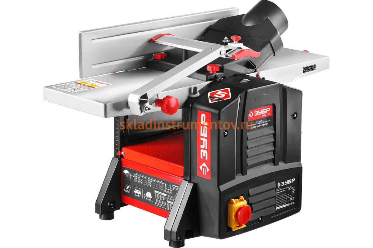 Рейсмусно-фуговальный станок ЗУБР МАСТЕР СРФ-204-1500 предназначается обработки изделий из древесины. Установка позволяет выполнять следующие виды операций: строгание по плоскости или под заданным углом, а также рейсмусование. Модель отличается простотой в эксплуатации и не требует специального технического обслуживания. Двигатель станка имеет защиту от перегрузок, что значительно продлевает срок службы. Деталь подается автоматически при этом скорость подачи составляет 8 метров в минуту. Благодаря двум стальным ножам устройство способно работать с древесиной как твердых, так и мягких пород. Гладкая поверхность рабочего стола облегчает подачу изделия в зону реза. Ременная передача способствует снижению шума во время эксплуатации.