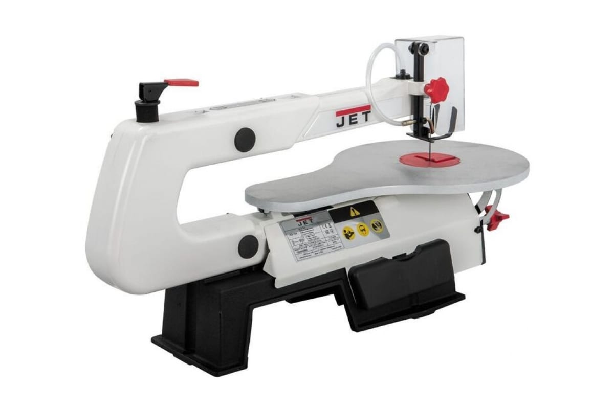 Лобзиковый станок JET JSS-16A 10000808MA представляет собой удобный инструмент для домашнего мастера. Модель позволяет распиливать детали из пластмассы, дерева и его производных (ДСП, ДВП, фанера) по траектории со сложным радиусом кривизны. В качестве оснастки устанавливаются пилки длиной 127 мм со штифтовым креплением или без него. Частота ходов пилки плавно регулируется в диапазоне от 550 до 1600 ход/мин, благодаря чему оператор с легкостью настраивает станок на работу с материалами различной степени твердости. Ход пилки составляет 15 мм. Величина наклона рабочего стола с высокой точностью определяется при помощи транспортирной шкалы, которая располагается на торцевой стороне корпуса. Подключение к системе пылевыведения осуществляется через патрубок диаметром 35 мм. Небольшие габариты станка позволяют экономить рабочее пространство мастерской.