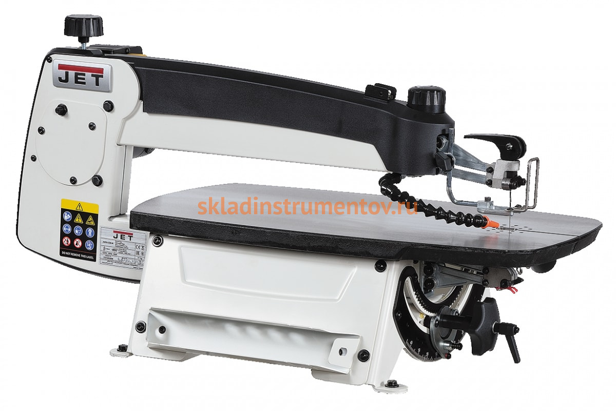 Лобзиковый станок JET JWSS-22B 727200BM служит для качественного и быстрого распила деревянных деталей по криволинейной траектории. Конструкция позволяет поднимать верхнюю часть рамы, что существенно облегчает наладку модели и позиционирование заготовки. Поднятая рама легко фиксируется. Положение нижней части рамы настраивается с помощью специальной рукояти в зависимости от длины пилки и толщины обрабатываемой заготовки. Маятниковый ход способствует высокой производительности пиления. Амплитуда продольных движений поддается регулировке. Жестко зафиксированный чугунный стол гарантирует эксплуатацию станка без лишней вибрации станины. Зубчатый механизм дает возможность наклонять пильную раму на угол до 45 градусов как влево, так и вправо. Подключение к системе пылевыведения осуществляется через патрубок диаметром 38 мм. Ход пилки составляет 19 мм. Выходная мощность установки равна 50 Вт. Частота хода - 400-1550 ход/мин.