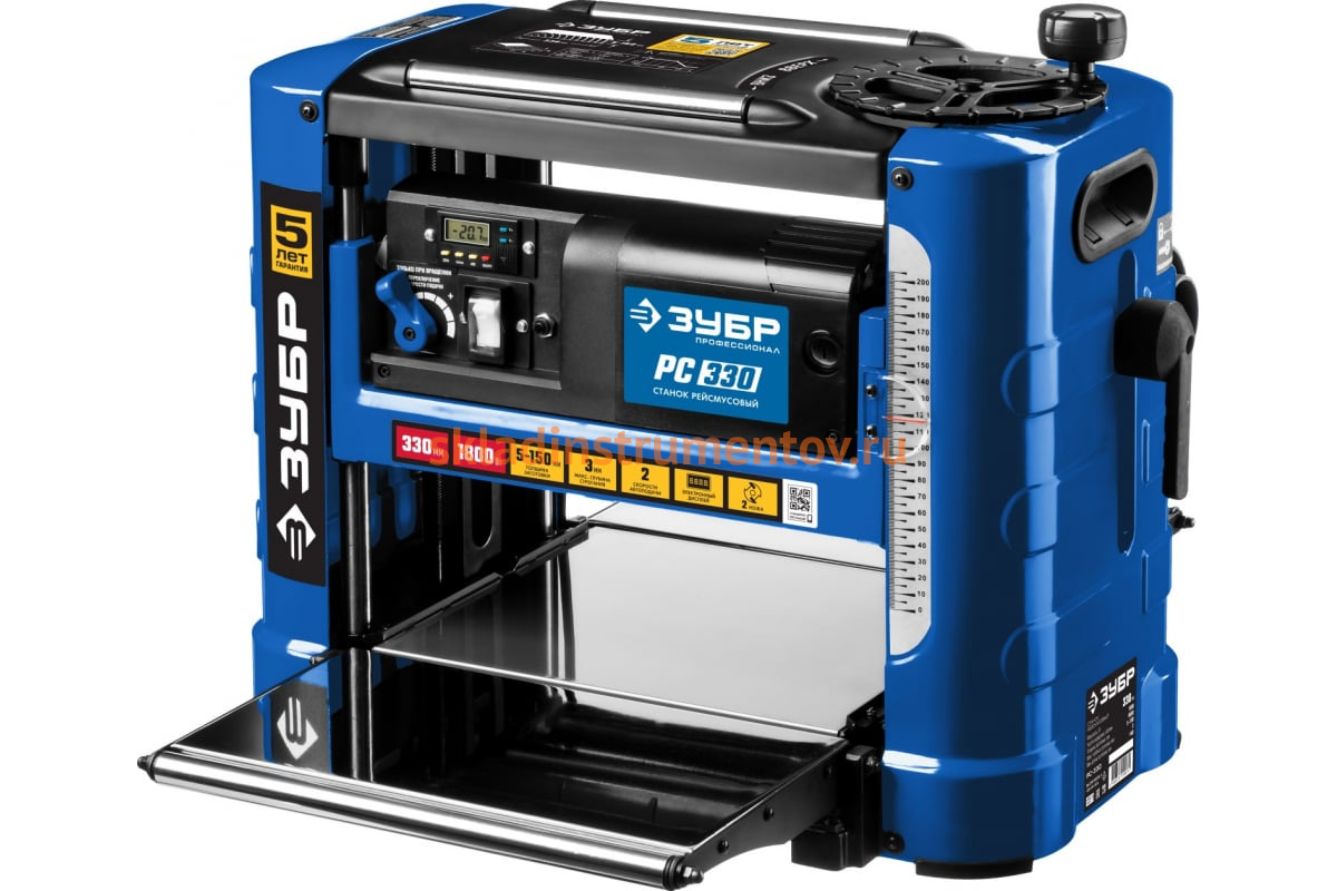 Рейсмусовый станок Зубр ширина строгания 330 мм, толщина заготовки до 150 мм, 2 ножа, РС-330 используют для продольного строгания древесины с одной стороны. Двигатель обладает высокой мощностью и надежной защитой от перегрузки.