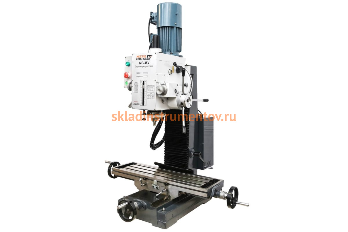 Сверлильно-фрезерный станок MetalMaster MF-45V применяется в производстве для сверления глухих и сквозных отверстий в сплошных материалах. Также данная модель предназначена для зенкерования, рассверливания, развертывания, нарезания внутренних резьб, вырезания дисков из листового материала, фрезерования и шлифовки.