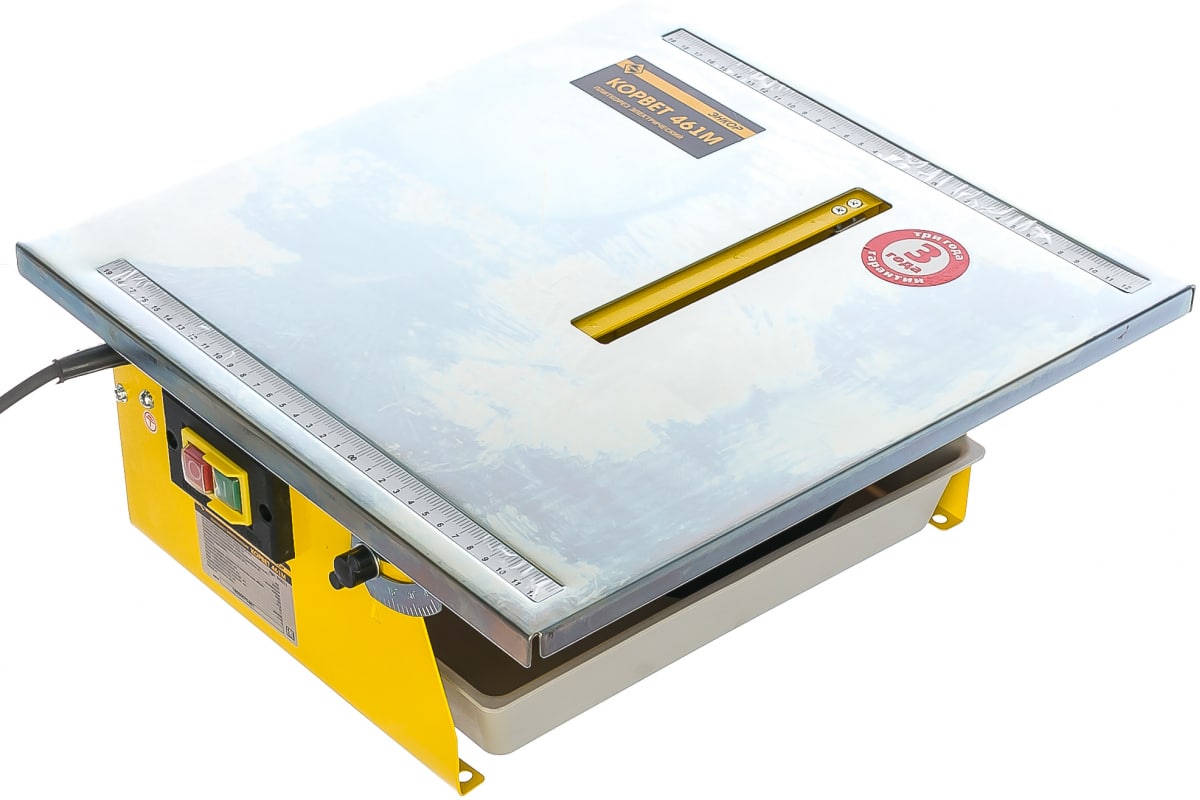 Электрический плиткорез Энкор Корвет 461М 94611 оснащается асинхронным двигателем, при помощи которого станок развивает необходимую мощность для резки плитки.