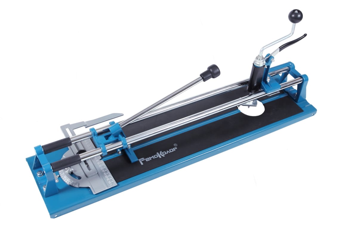 Плиткорез с резаком отверстий, 400 мм РемоКолор 46-0-046 применяется во время укладки керамической плитки. Устройство позволяет выполнять аккуратный рез плитки по прямой, под углом или высверливать отверстия диаметром до 80 мм.