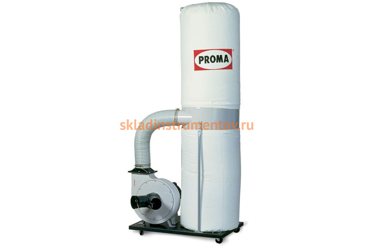 Стружкоотсос Proma OP-750 25003002 предназначен для большинства деревообрабатывающих станков. Применяется для сбора древесных летучих отходов (стружка, пыль) во время выполнения операций мех. обработки древесины.