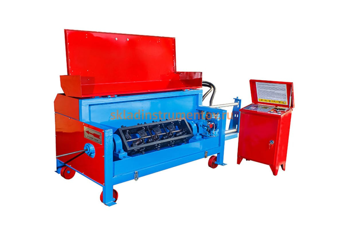 Правильно-отрезной станок Vektor ССМ-12 6000 разработан для выравнивания и разрезания металлических прутков, тонких труб и арматуры. Устройство оснащено колесами для простоты передвижения и удобства использования в помещениях с ограниченным пространством. Станок работает с прутками длиной от 0,5 до 12 метров - выпрямляющие валы обеспечивают равномерное выпрямление. Рабочий диаметр находится в диапазоне 6-12 мм. Класс арматуры не должен быть выше А3. Отрезные работы выполняются при помощи гильотины, которая работает от гидравлического привода. Обработка металла ведется с незначительной погрешностью - при отрезании прутка разница длины составляет не более 0,8 мм. Удобная панель управления с помеченными кнопками позволяет быстро и точно настроить работу оборудования.